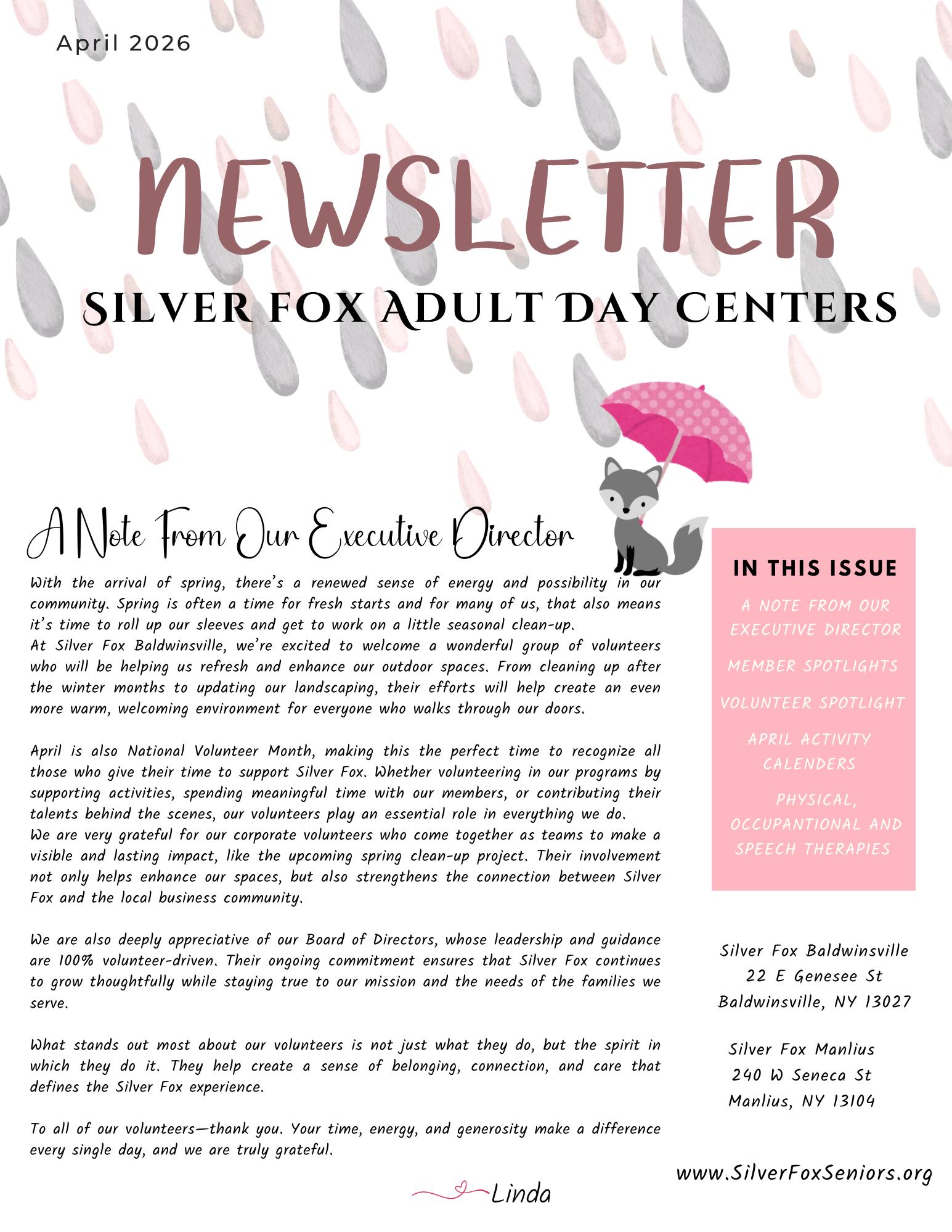 The Chittenango LionsA presentation by Executive Director, Linda Johnstone, on the importance of social adult day programs and the vital role they play in supporting seniors and family caregivers. Attendees will learn how Silver Fox Adult Day Centers provides a safe, engaging, and cost-effective long-term care option that helps older adults remain at home longer.