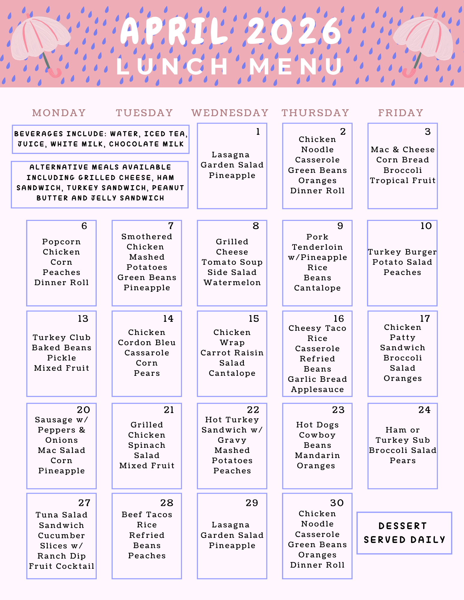 Check out this month’s Lunch Menu